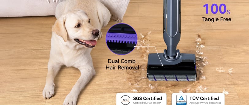 Another thing I dislike about vacuuming is the hair. All the different types of hair that get caught and tangled, further delaying the time it takes to finish cleaning. You have to go find a pair of scissors, sit down, and start cutting up that tangle yourself. Ew. Then, you have to go wash the scissors with soap and get back to it. But, with the S20, tangles are a thing of the past. Almost. The dual comb inside does a better job at removing tangles, meaning you don’t have to stare at hair knots nearly as often.